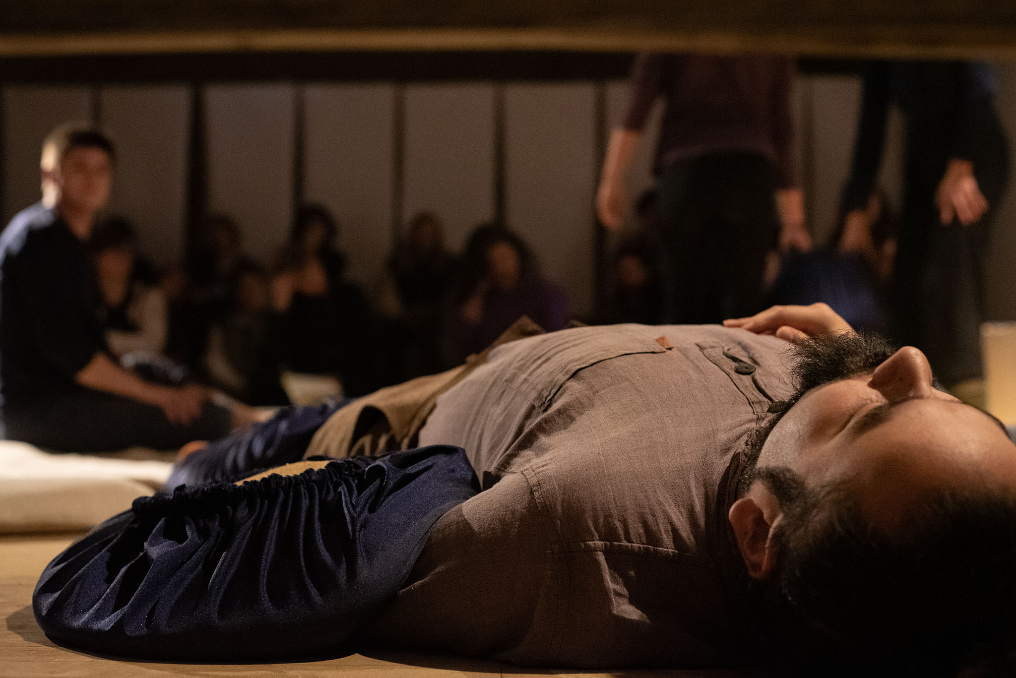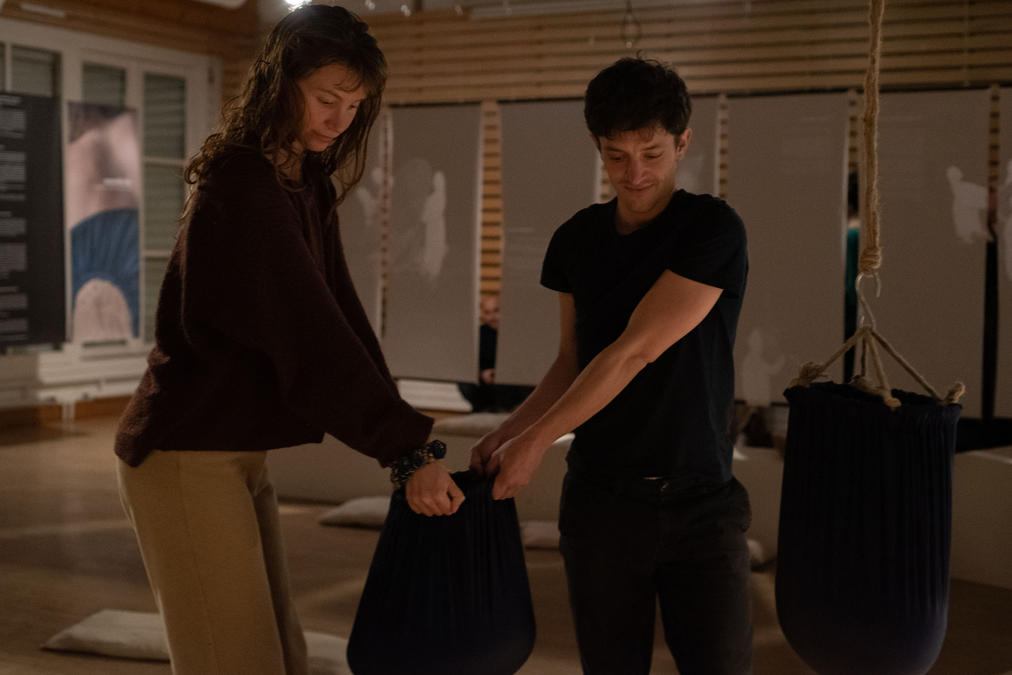 Comment faire corps par nos sensations ? “Amasthésie” est un espace d’explorations sensorielles. Elle se forme en collectif à travers la manipulation de tas de sables enveloppés dans du textile. En médiateurs du toucher, ces amas se déposent, reposent et se soulèvent. Cette pratique invite à porter attention à nos poids, nos rythmes, nos états de corps, pour prendre soin, avec tact, et souligner nos liens d’interdépendances.