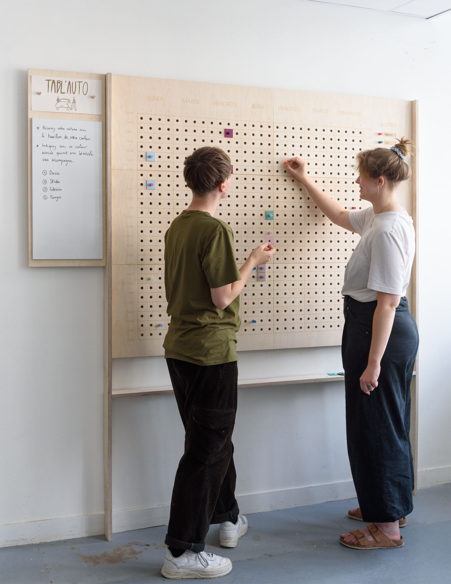 A la ferme Emmaüs Baudonne, la réinsertion par le maraîchage permet une alternative à la prison où vivent des détenues en fin de peine. Le projet propose des outils d’organisation et de concertation à destination des résidentes afin qu’elles prennent le temps de modifier leur quotidien et de s’approprier le lieu. A travers des ateliers, elles peuvent faire remonter leurs besoins et difficultés, proposer des solutions et choisir de les expérimenter. Des objets signalétiques accompagnent l’évolution des règles de vie décidées collectivement, incitent à reprendre la main sur les emplois du temps des permissions, gagner en autonomie et pouvoir d’agir.