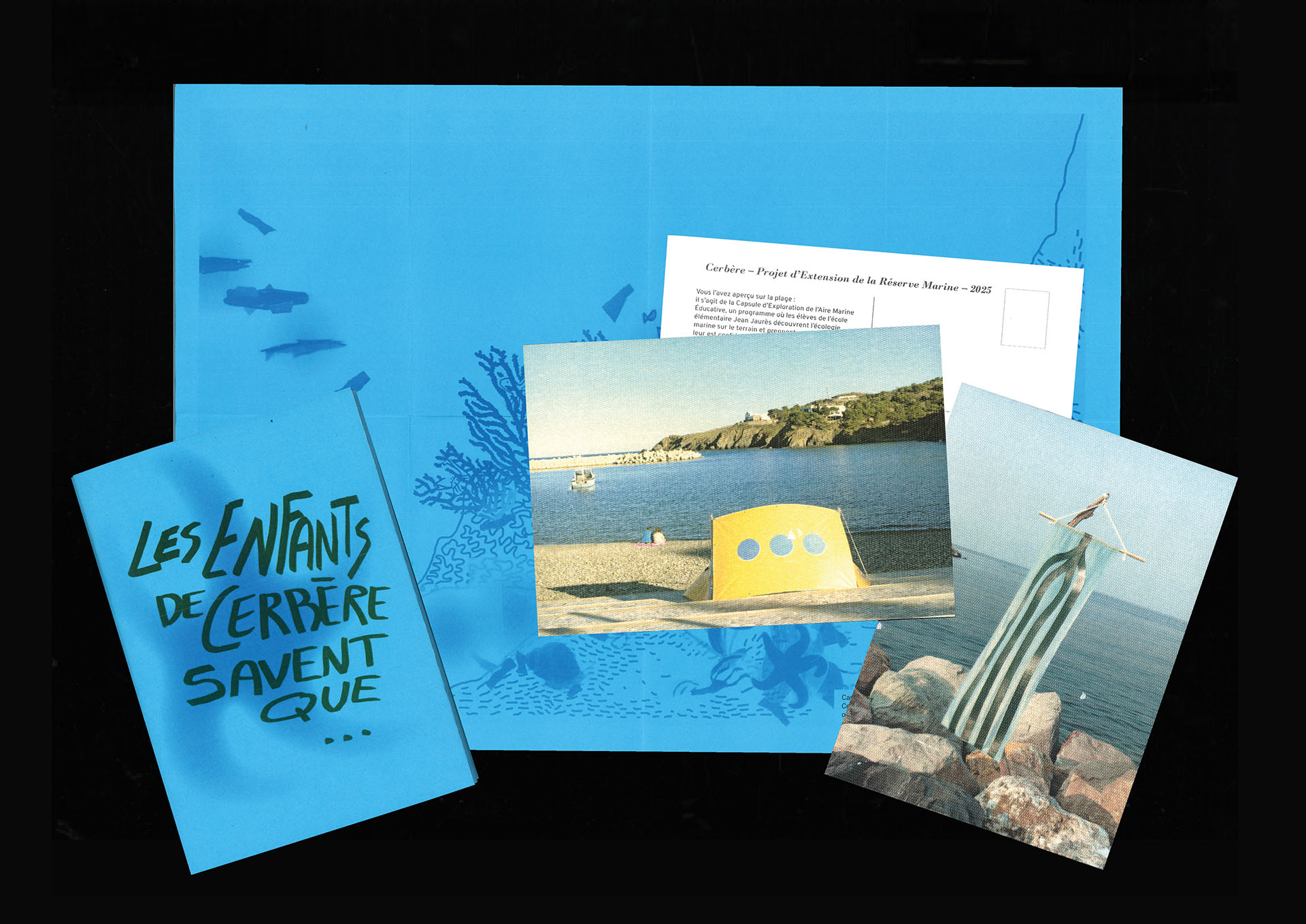 À la frontière franco-espagnole, la réserve marine de Cerbère-Banyuls s’apprête à s’étendre. À Cerbère, petit village côtier, cette transformation reste pourtant peu visible. Ce projet part d’une enquête de terrain pour imaginer des formes de médiation capables de rendre cette transition perceptible. Ateliers avec les enfants, capsule d’observation sur la plage, drapeau-repère ou cartes sensibles deviennent des prétextes à discussion, pour partager les savoirs sur la mer et ouvrir un dialogue entre habitants et écosystèmes marins.